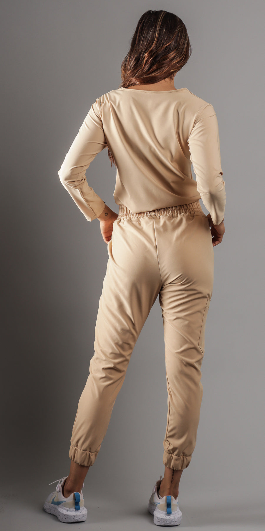 Estilo Elegante con Cuello en V: La parte alta del scrub presenta un favorecedor cuello en V, complementando con una manga larga que agregara un toque de sofisticación a tu atuendo. El corte moderno te asegura lucir diferente y a la moda en todo momento.