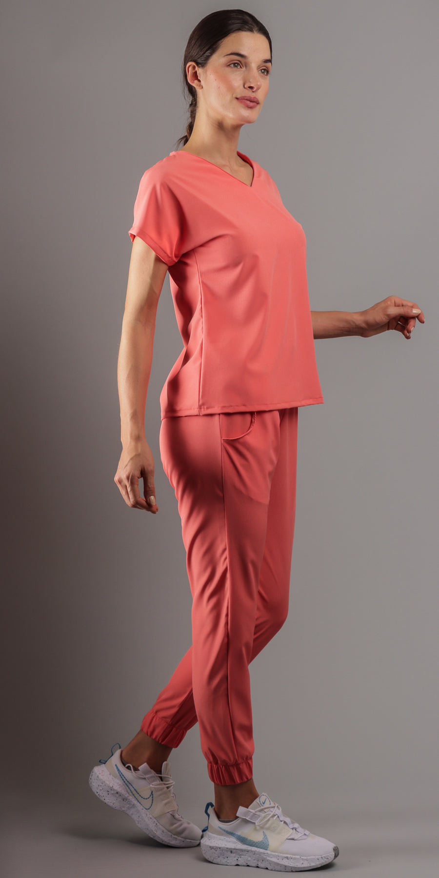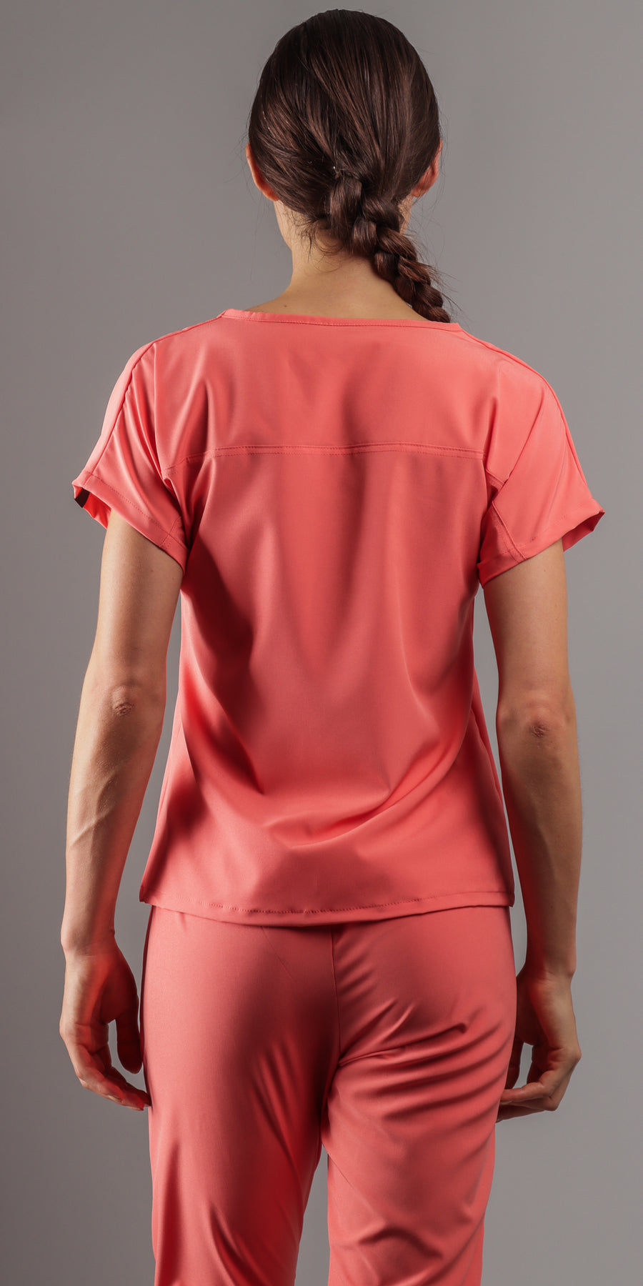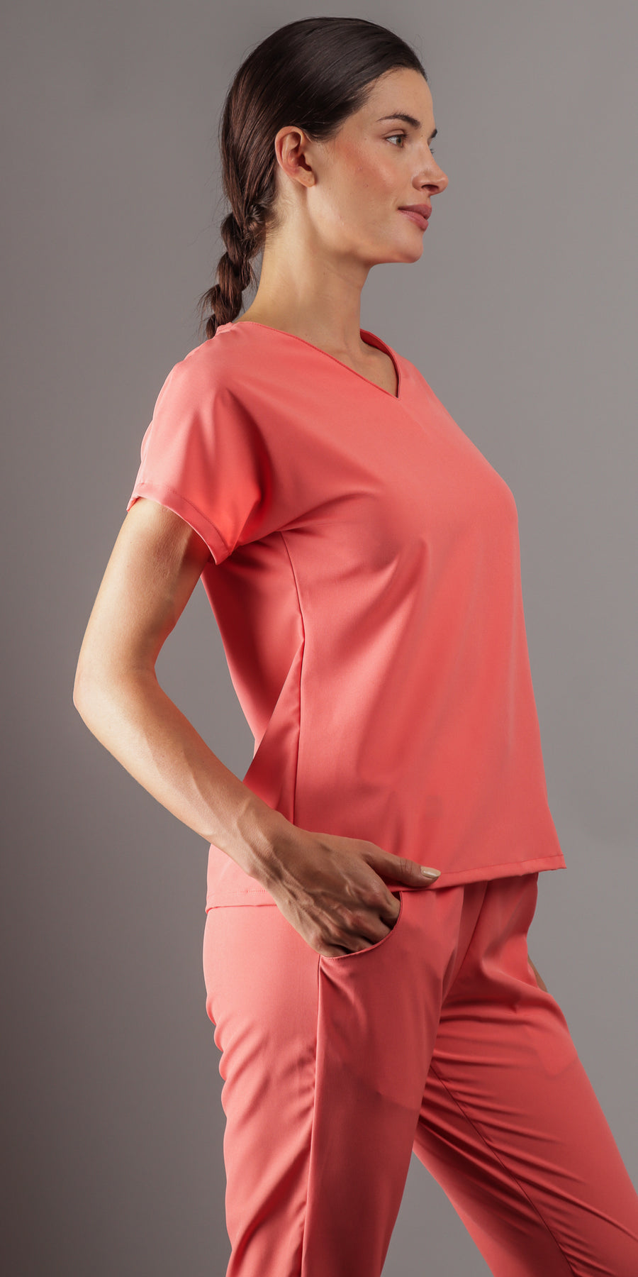 1. Estilo Elegante con Cuello en V: La parte alta del scrub presenta un favorecedor cuello en V, agregando un toque de sofisticación a tu atuendo. El corte moderno te asegura lucir diferente y a la moda en todo momento.