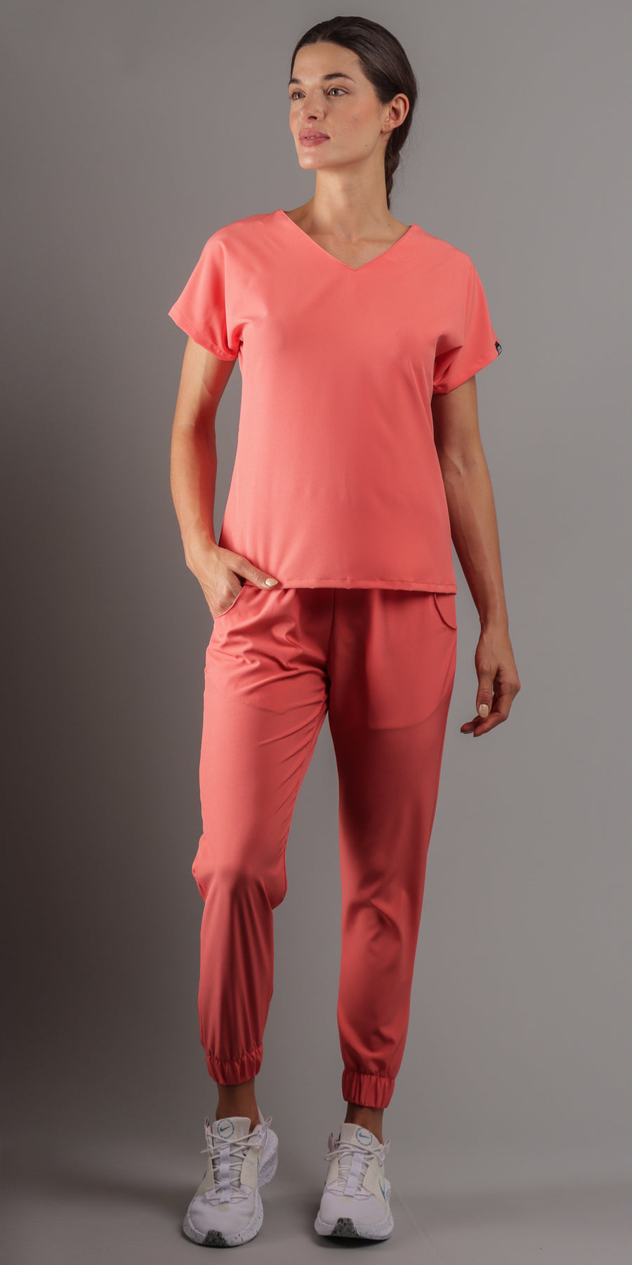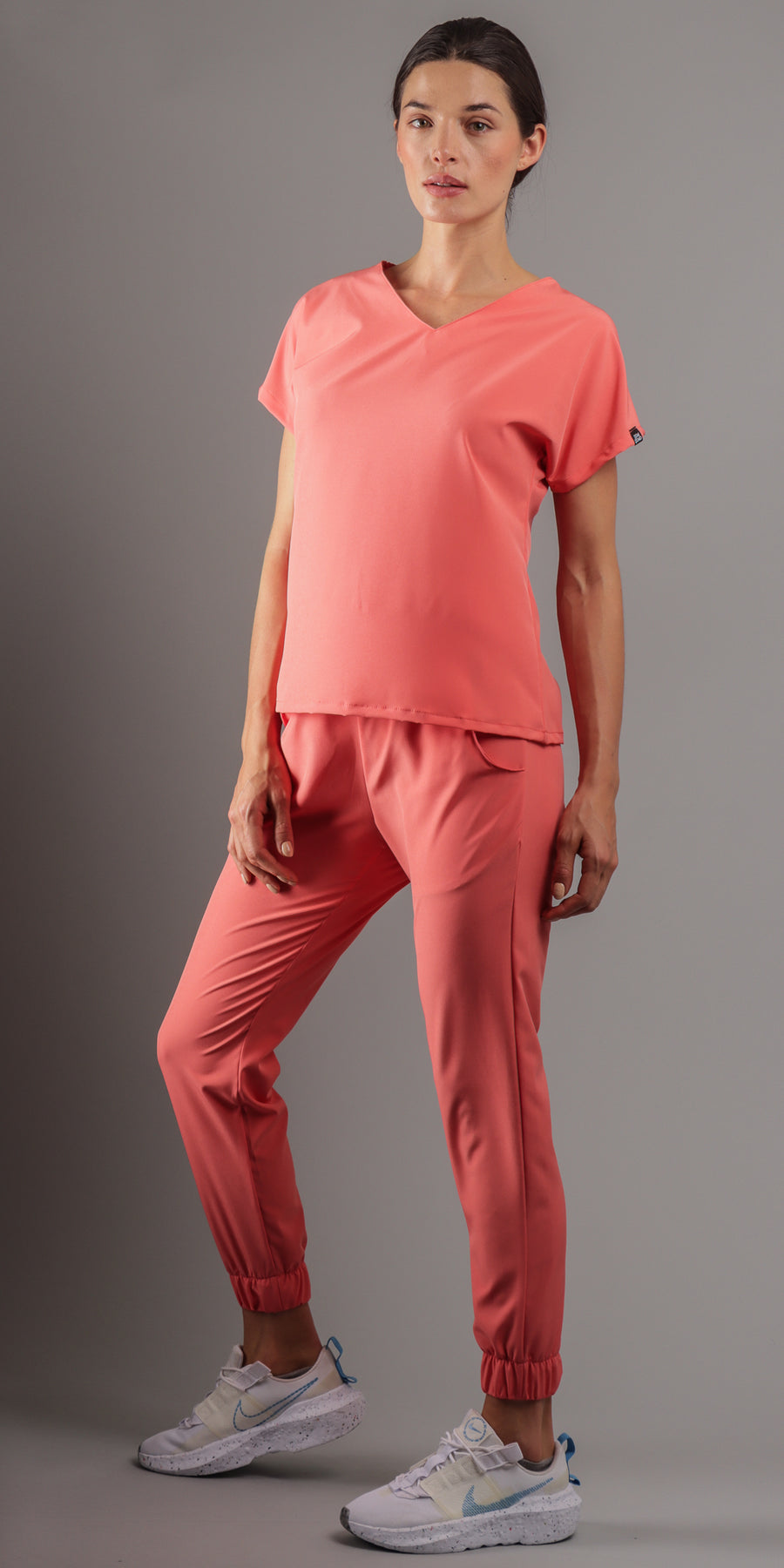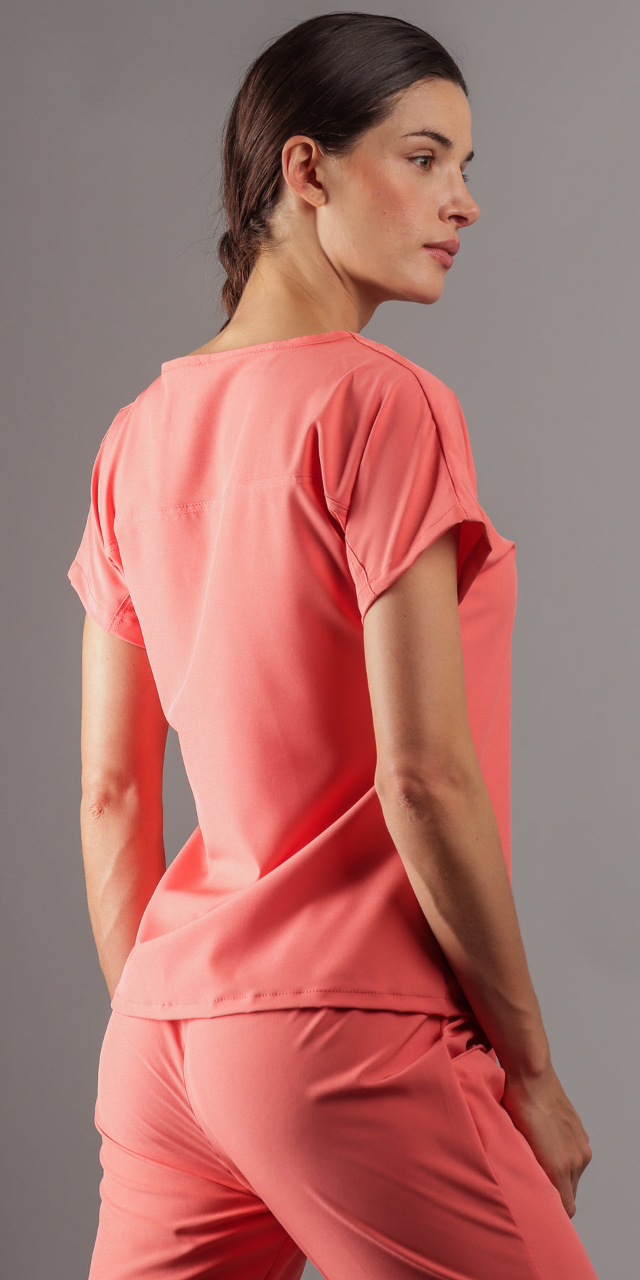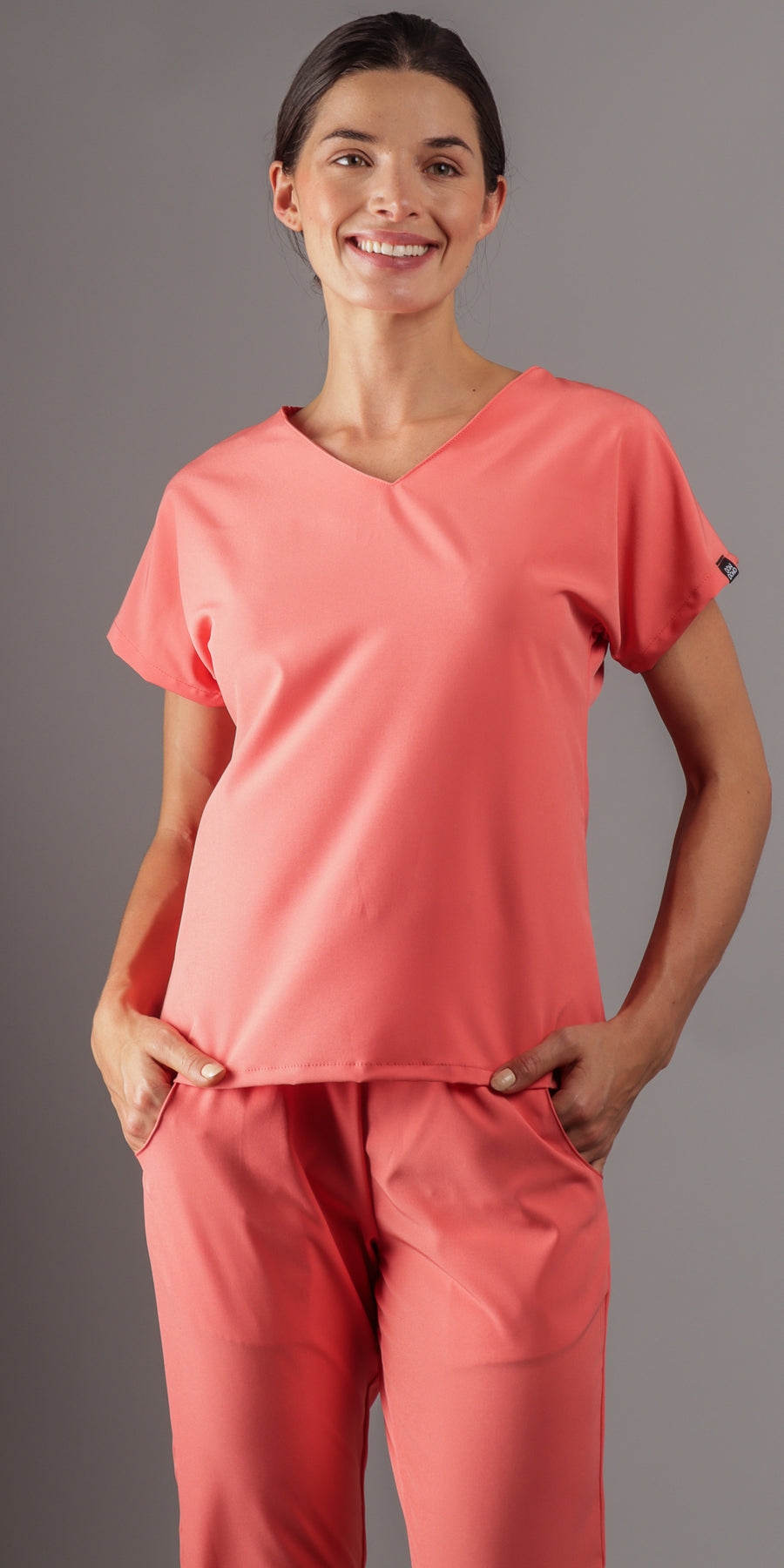 1. Estilo Elegante con Cuello en V: La parte alta del scrub presenta un favorecedor cuello en V, agregando un toque de sofisticación a tu atuendo. El corte moderno te asegura lucir diferente y a la moda en todo momento.