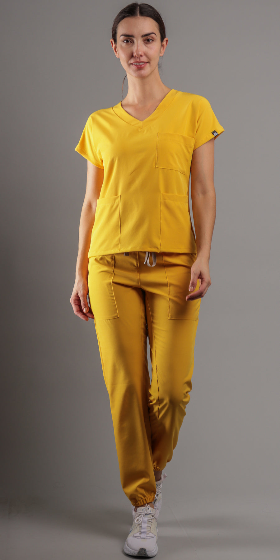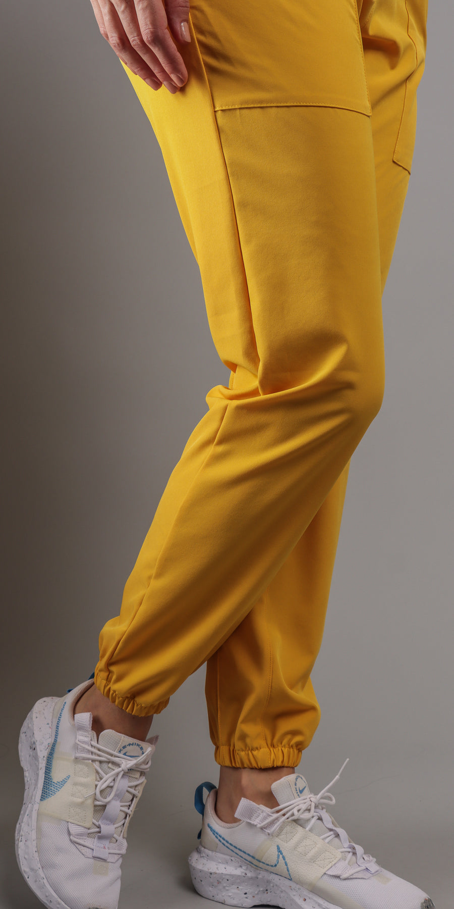 3. Pantalón Jogger para Mayor Comodidad: El pantalón estilo jogger te brinda comodidad y movilidad durante tu jornada laboral. Además, posee resorte en los puños para un ajuste perfecto. Cuenta con dos bolsas laterales para llevar tus objetos esenciales y una bolsa trasera adicional para mayor conveniencia.