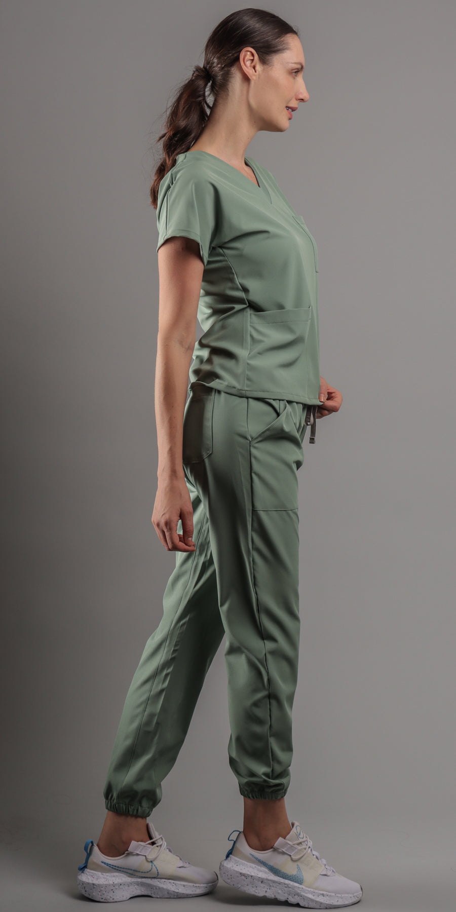 3. Pantalón Jogger para Mayor Comodidad: El pantalón estilo jogger te brinda comodidad y movilidad durante tu jornada laboral. Además, posee resorte en los puños para un ajuste perfecto. Cuenta con dos bolsas laterales para llevar tus objetos esenciales y una bolsa trasera adicional para mayor conveniencia.