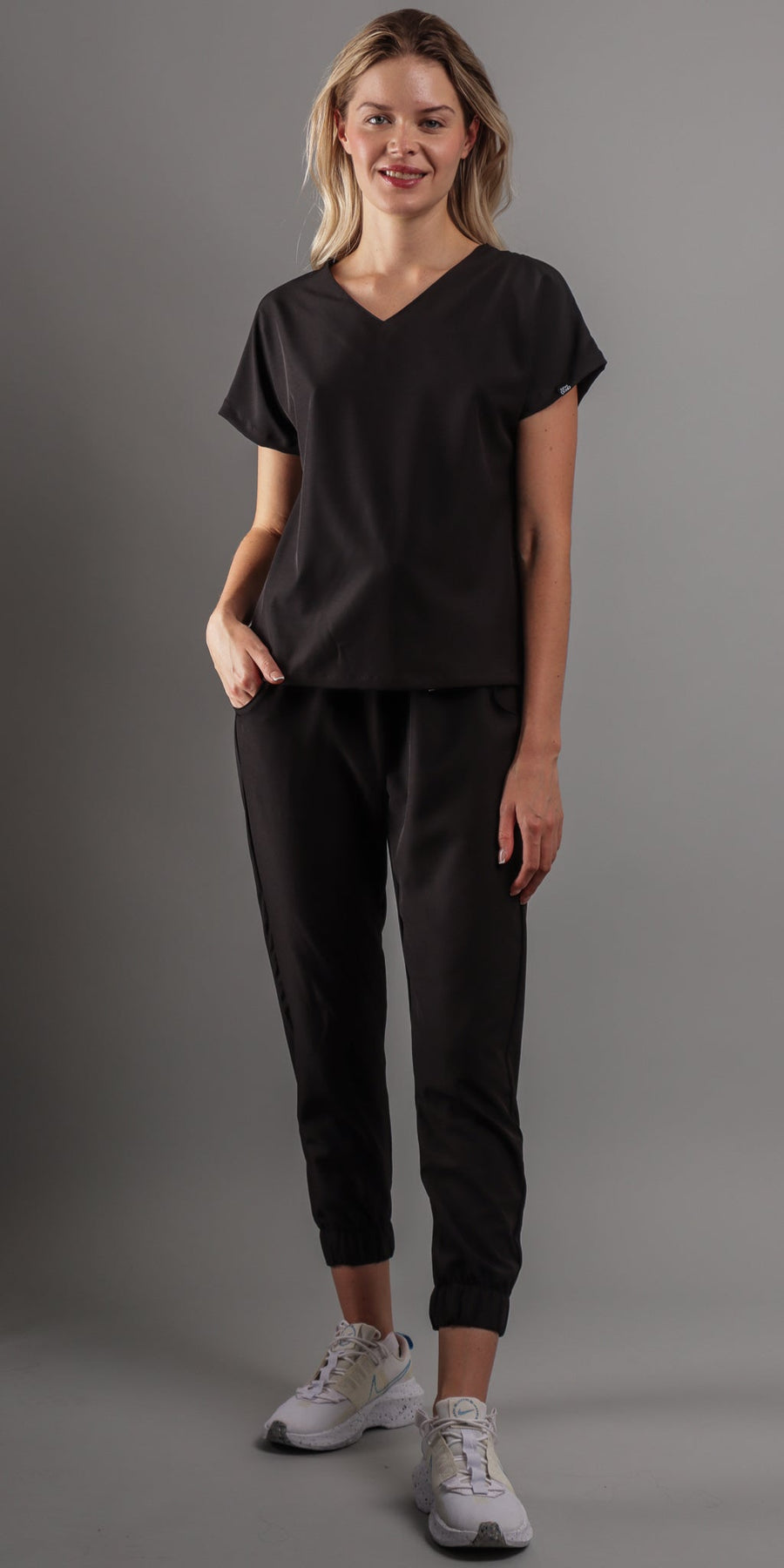 Estilo Elegante con Cuello en V: La parte alta del scrub presenta un favorecedor cuello en V, agregando un toque de sofisticación a tu atuendo. El corte moderno te asegura lucir diferente y a la moda en todo momento.